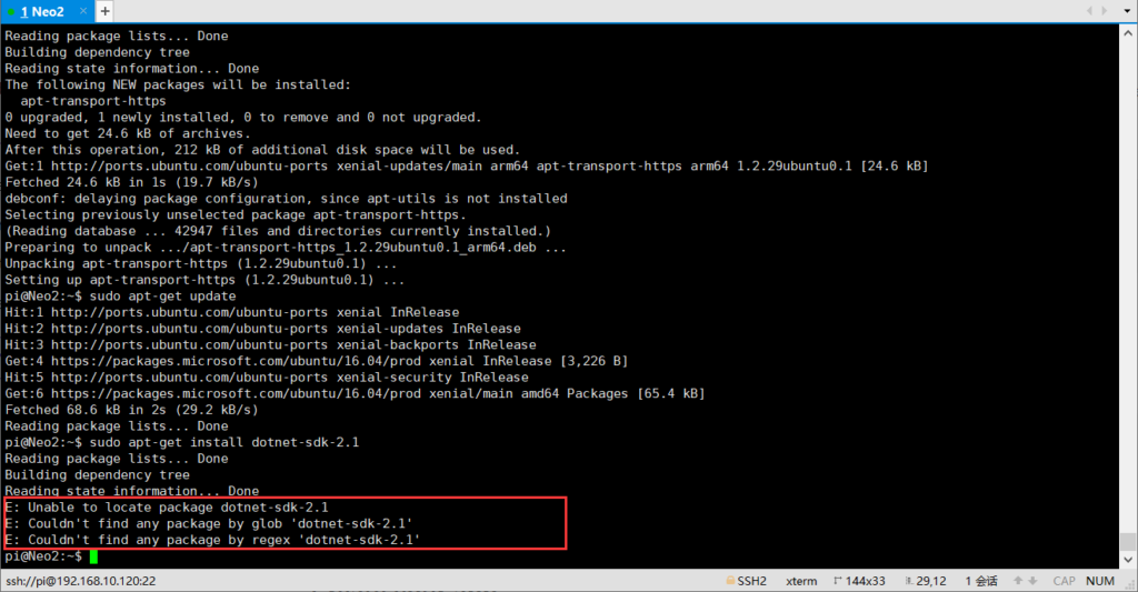 1、为什么不按照微软官方的教程按照.Net Core? 本来我是想按照微软官方的教程一步一步按照core2.1的,但是一直cannot find any package。所以只能借鉴别个的教程来安装Runtime。个人推测是因为系统和开发板的原因,手里面展暂时没有树莓派,用的是Nanopi。微软官方的教程地址:https://dotnet.microsoft.com/learn/dotnet/hello-world-tutorial#install。