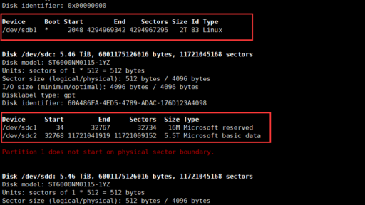 起因是,挂载了一个装了冷备数据的硬盘到debian中。然后机器上面还有两个个硬盘,大概和下面类似: 要重新分区的sdc硬盘。鬼事神差的,选了sdb 一桶操作猛如虎。完事儿之后,卧槽!!!!心里面凉了半截,这是最后一份冷备。赶紧想办法恢复数据。 先是在Widnows上面使用Diskgenius把全盘做了一个镜像出来。避免后续恢复数据的时候,再次误操作,让数据恢复概率进一步降低。 全盘镜像之后,又使用Diskgenius做了一次文件恢复扫描,结果很不理想。所以如果你在这里做了和我一样的操作的话,就不要用Diskgeni…