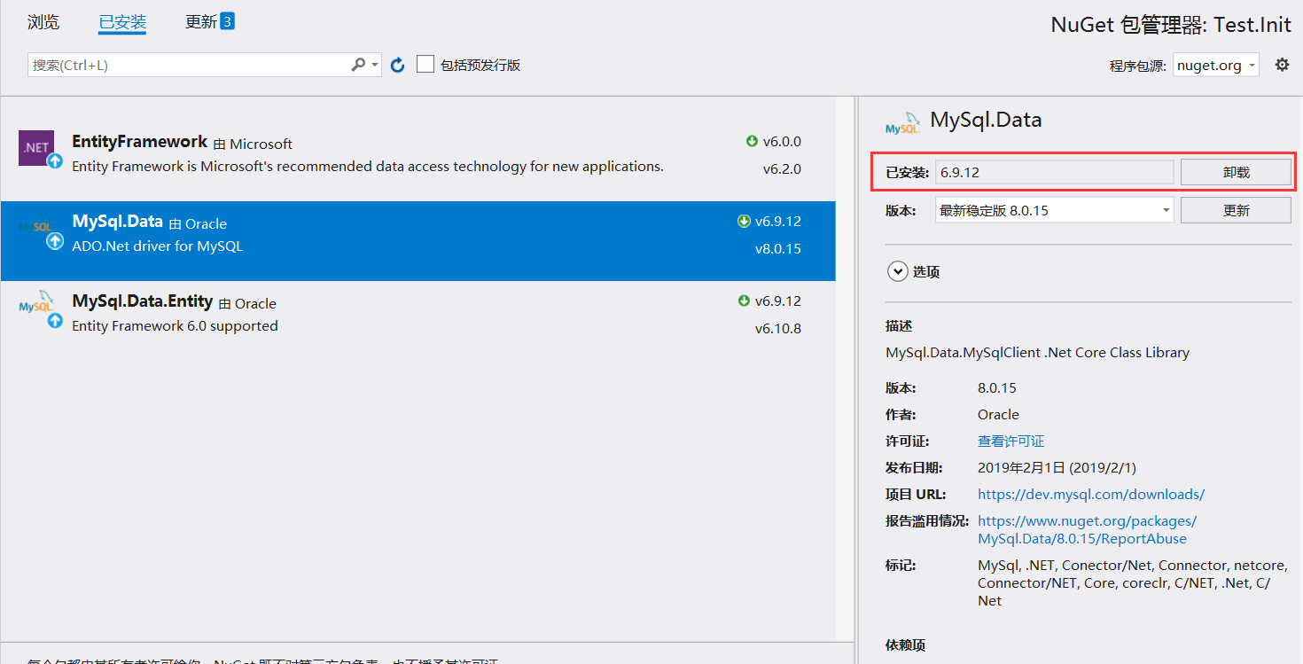 Code First确实好用,但是各种配置和报错折腾人啊!!记录一下EF MySQL的踩坑之路。 忙活大半天,把代码写好了(MVC Code Firest)。结果一运行,数据库直接报错“未将引用设置到对象的实例”。一脸懵逼,把代码检查了好几遍,没有问题呀。 各种寻医问药,总于让我找到问题所在。NuGet安装的Mysql的包必须是6.9.12以下才行。不然就会各种报错。果然SQL Server才是亲儿子...