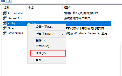 创建好用户之后,右键用户,选择“属性”