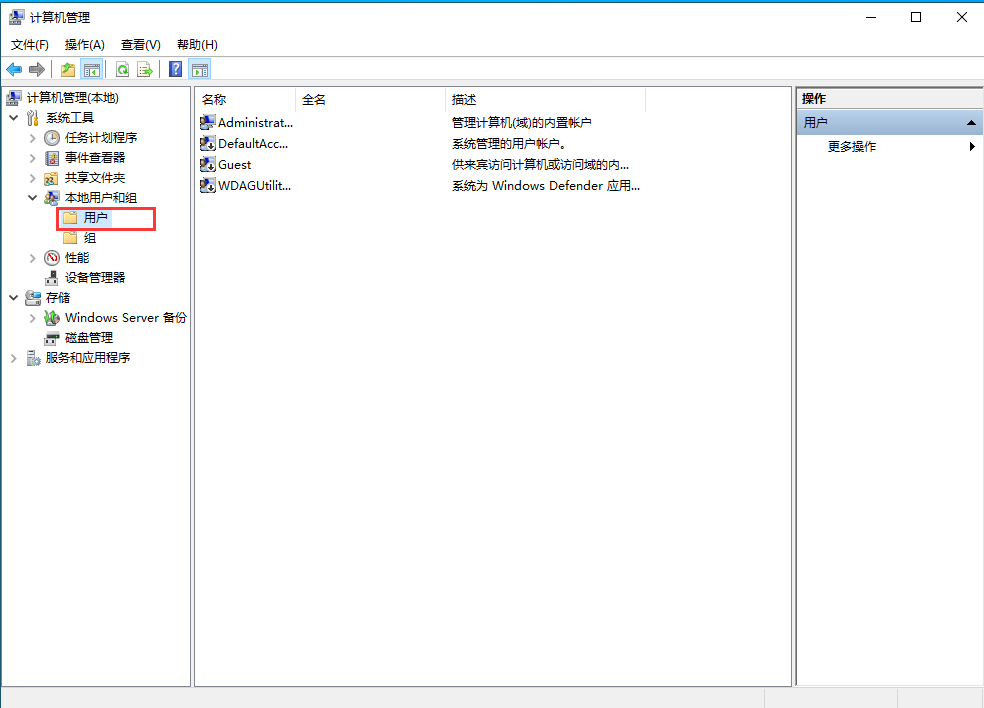 打开计算机管理,找到本地用户和组。在用户选项卡中新建用户。