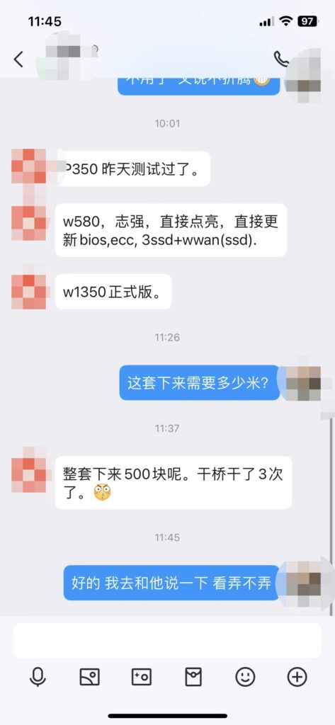 但是嘞,卖机器的卖家非常nice,也非常愿意交流。他尝试联系了一个维修的大佬,咨询了一下能否直接将北桥更换为W580!
